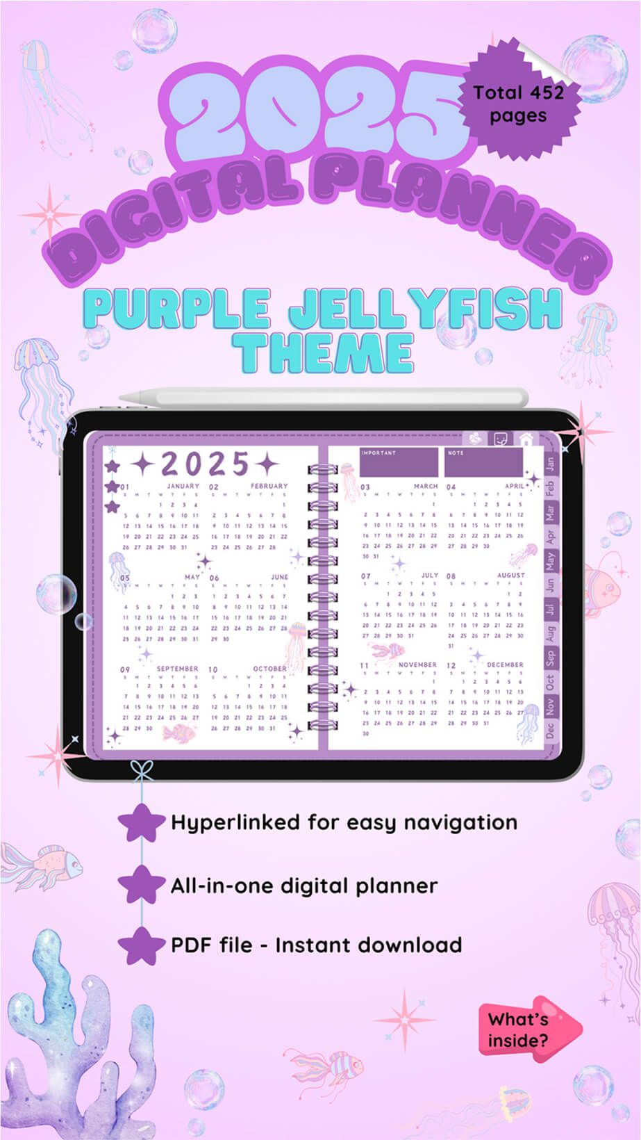 2025 Digital planner – Purple Jellyfish theme (Hyperlinked)