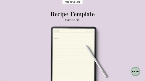 Free Recipe Template PDF (Portrait)